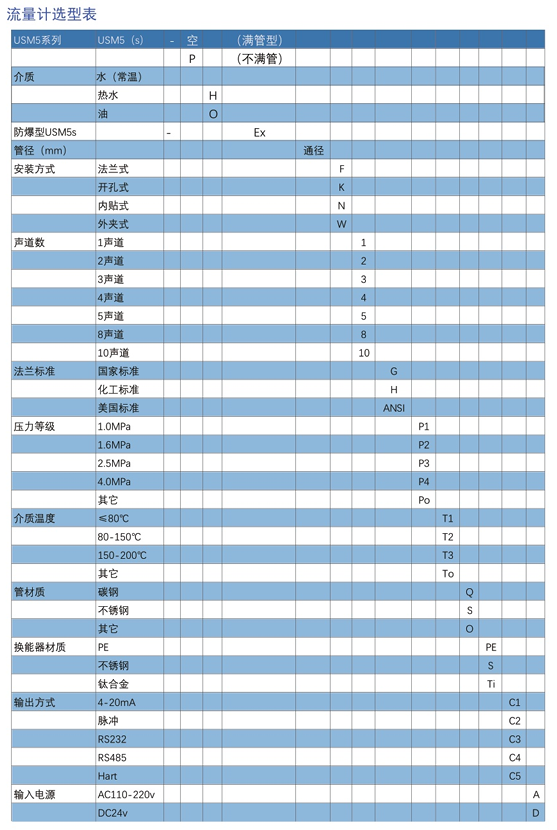 流量计选型表
